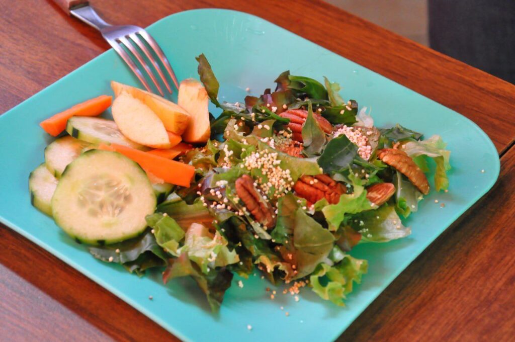 La segunda parte consistió en una sesión práctica, donde las y los participantes aplicaron los conocimientos adquiridos mediante la preparación de ensaladas saludables utilizando frutas, verduras, leguminosas, cereales, granos, proteínas y grasas saludables. Esta actividad permitió experimentar nuevas combinaciones y demostrar que comer de manera nutritiva también puede ser delicioso y accesible.