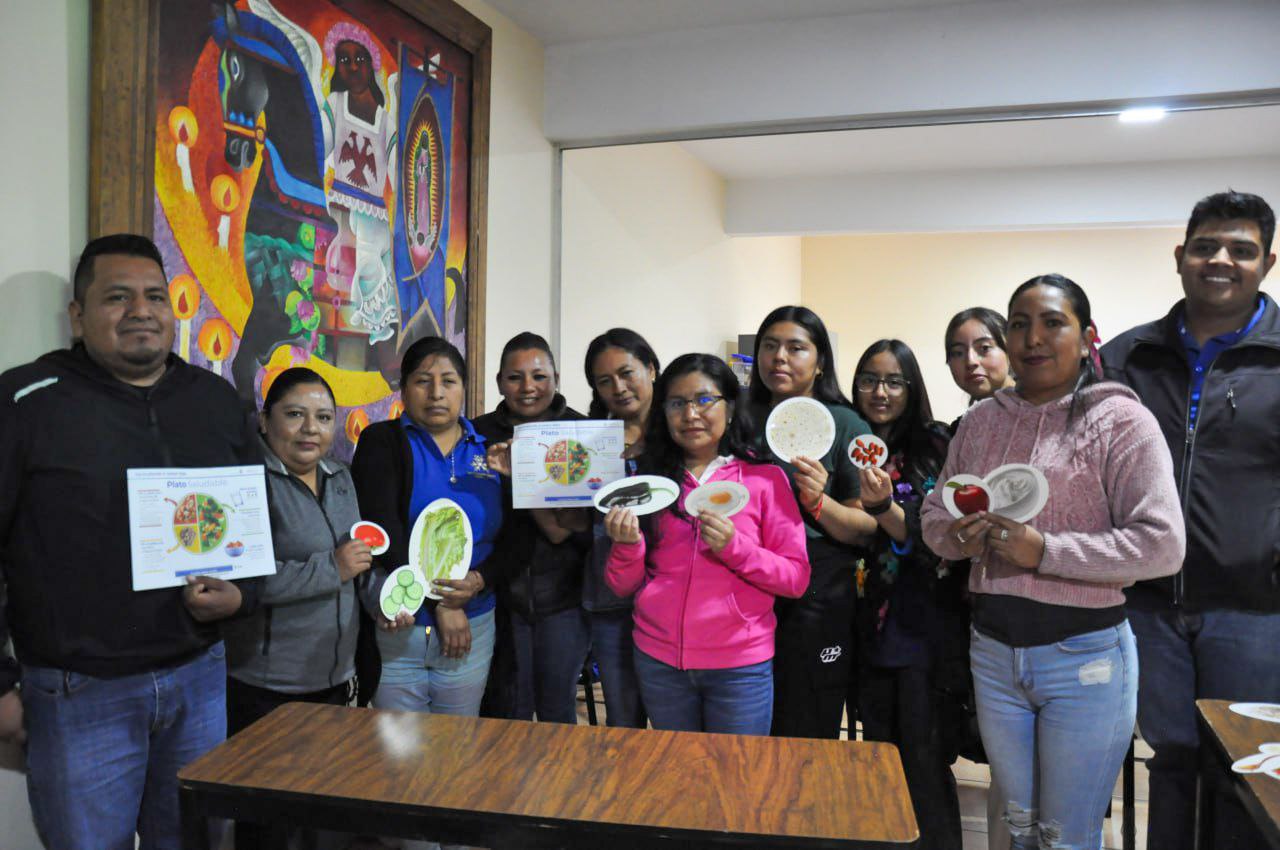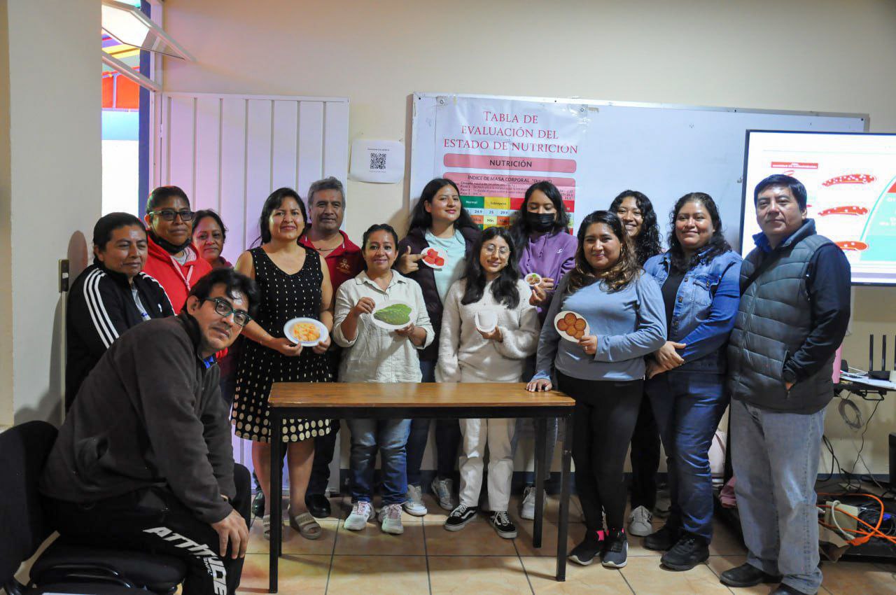 Integrantes del Centro de Desarrollo Comunitario Centéotl A.C. participan en una capacitación sobre nutrición impartida por profesionales de la salud del Instituto Mexicano del Seguro Social (IMSS), mediante un taller teórico y práctico enfocado en promover hábitos alimentarios conscientes y saludables.