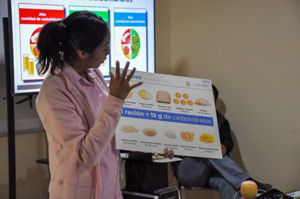 También se abordó el impacto de la diabetes en la población mexicana, así como las acciones preventivas desde la alimentación saludable, por lo que se apredió a distribuir adecuadamente los grupos de alimentos en los platos y a reconocer las porciones recomendadas para mantener una dieta balanceada.