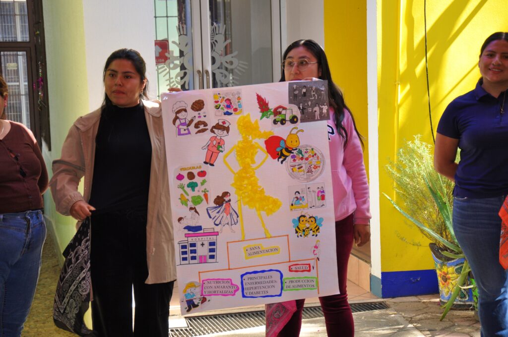 Como parte de la jornada, se realizó un intercambio de semillas y una muestra gastronómica, ambas dirigidas a promover la diversificación de cultivos y la sana alimentación. En este espacio se destacó la importancia del amaranto como alimento nutritivo y culturalmente significativo dentro de la dieta cotidiana de las familias.