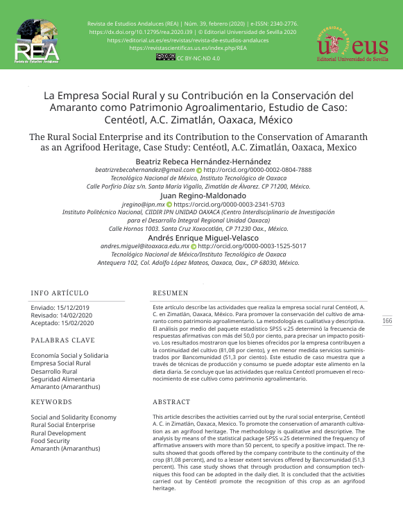 La Empresa Social Rural y su Contribución en la Conservación del Amaranto como Patrimonio Agroalimentario, Estudio de Caso Centéotl, A.C. Zimatlán, Oaxaca, México