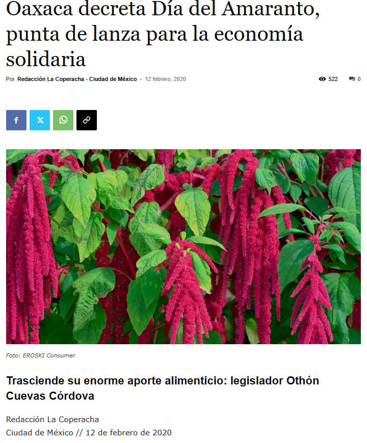 Oaxaca decreta Día del Amaranto, punta de lanza para la economía solidaria